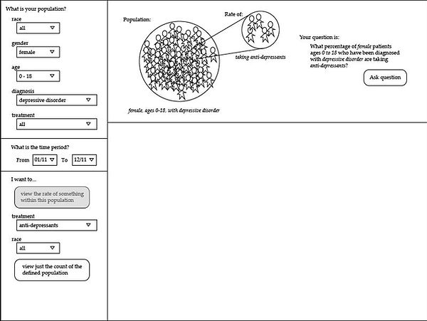 The Mental Health Research Network is a collaboration of 11 HMOs that have agreed to share information for research. They have a lot of data, but it currently requires significant technical training to use. This limits its ability to improve healthcare by preventing a wider audience - including clinicians, researchers, and policy makers - from using the data to make informed decisions. We worked with the Group Health Research Institute to design a tool that will make it easier for more people to use the data.